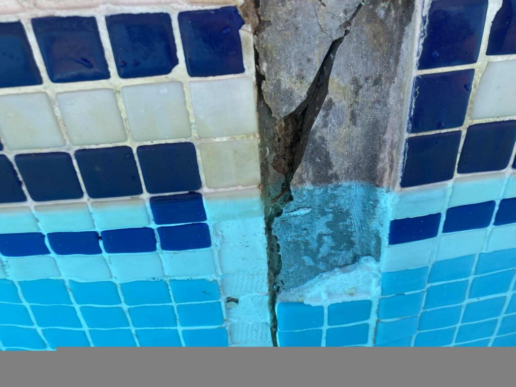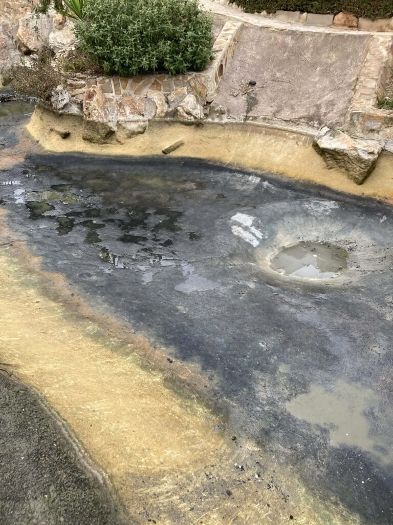As you can see from the photos the crack that appeared in the big pool was quite severe and was leaking water but is now hopefully secure until October when we can investigate it further.