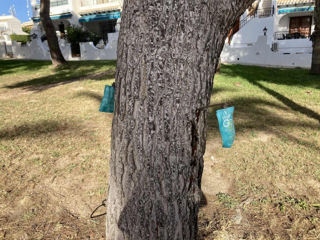 15/11/2025: This morning we are having all of the pine trees on the urbanisation treated for processional caterpillars. A chemical is injected directly into the trees so that it actually reaches the caterpillars where they feed. This is a much more reliable and longer lasting treatment than spraying and only needs to be carried out once a year.