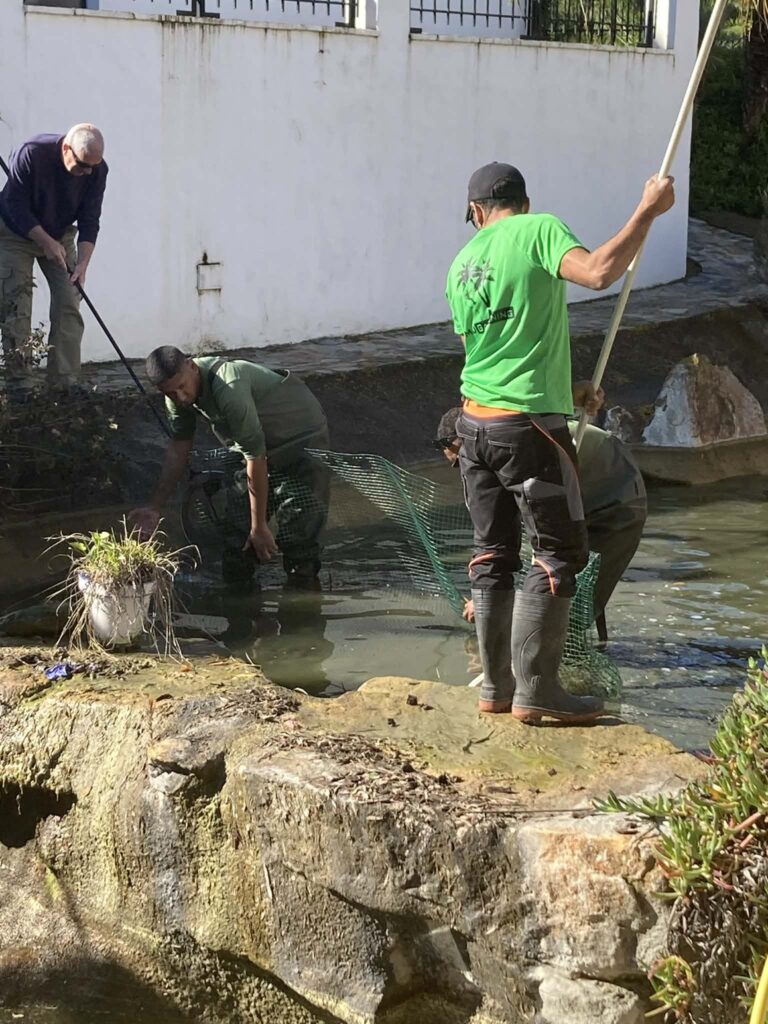 12/10/2025: This morning we have started the process of cleaning the animal fountain. Our pool team are pumping out the remainder of the water, removing the sludge from the bottom and they will then jet wash it. Once this process is complete we can see what work needs to be done and repair the leak. We will also be repairing the lights which are already installed.